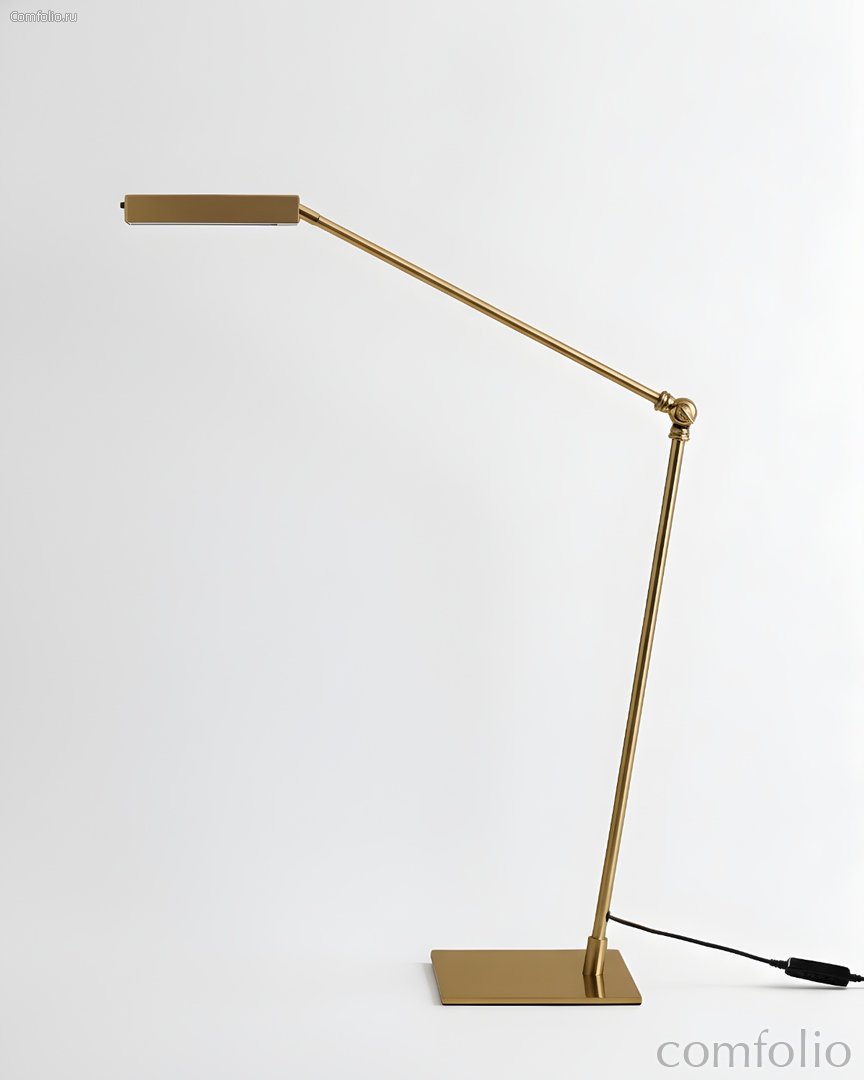 Золотая настольная лампа "Уве" выполнена в лаконичном современном стиле и идеально подойдёт для рабочего стола, с интегрированным LED-источником света, который обеспечивает равномерное и комфортное освещение. Световой модуль встроен в вытянутый плафон, благодаря чему лампа выглядит минималистично и аккуратно. Конструкция лампы оснащена продуманным механизмом регулирования высоты: подвижные металлические рычаги соединены шарнирным узлом с фиксирующим винтом, который позволяет точно настроить высоту и угол наклона светильника. Благодаря этому свет легко направить именно в нужную точку, не меняя положение основания. Минимальная высота лампы составляет 50 см, что удобно для локального освещения рабочего стола, а общая высота конструкции в разложенном состоянии достигает примерно 92 см. Лампа отлично впишется в интерьеры в стиле минимализм, современный, скандинавский, лофт и хай-тек, а также аккуратно дополнит домашний кабинет, рабочую зону в спальне или гостиной.