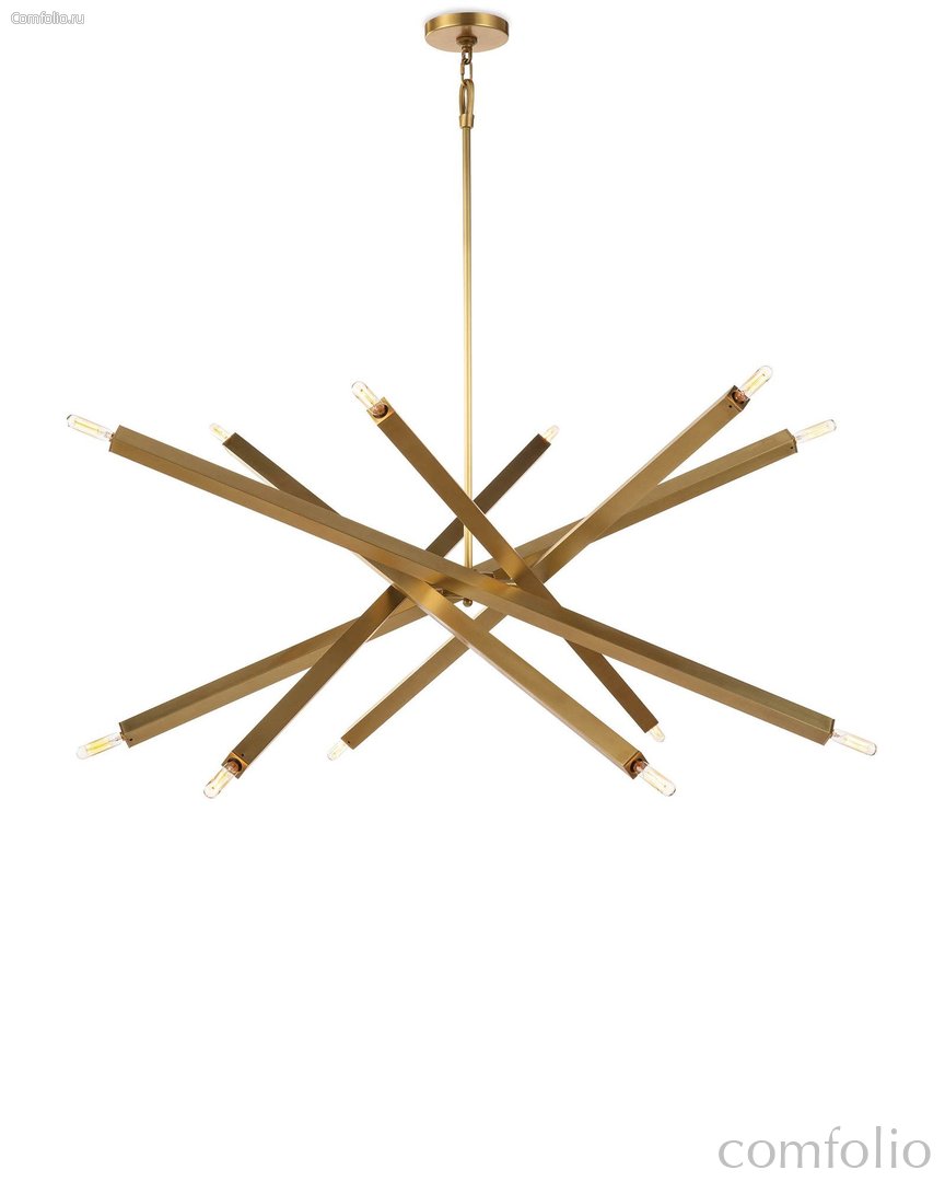 Золотая люстра “Пэрис” состоит из двенадцати светильников с пересекающимися стержнями, создающими смелые и динамичные линии. Ее дизайн воплощает идею изобретательности, благодаря своим прямым линиям, которые могут быть расположены вертикально, горизонтально или настроены в случайном порядке – это позволяет вам настроить стиль люстры под свой собственный вкус и предпочтения. Количество ламп в люстре составляет 12 шт., что обеспечивает яркое и равномерное освещение вашего пространства. Лампы этой люстры имеют тип цоколя – E14, что обеспечивает удобство и простоту замены. Люстра “Пэрис” выполнена в цветовой гамме - латунь, который прекрасно впишется в современные интерьеры – модерн, лофт, минимализм. Она станет визуальным акцентом вашего помещения и добавит ему стиля и функциональностью. С ее помощью вы сможете создать особую атмосферу и подчеркнуть индивидуальность вашего дизайна.