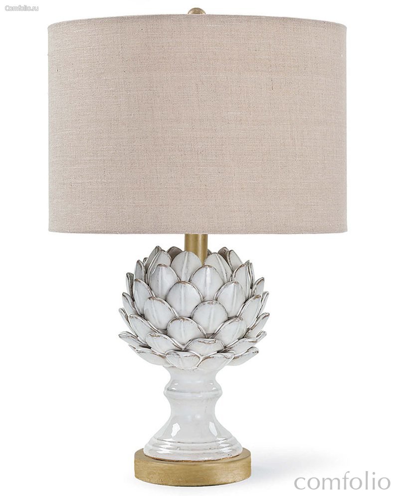 Уникальная настольная лампа "Мерида" в виде артишока, которая станет прекрасным дополнением к вашему интерьеру. Керамический корпус лампы выполнен в белом цвете с глянцевыми золотистыми акцентами на кончиках каждого листа, создавая впечатление, будто они слегка состаренные. Этот необычный элемент дизайна придаст лампе особый шарм и внесет ноту эстетики в ваш интерьер. Основание лампы выполнено из матового металла в цветовой гамме - латунь, что добавляет еще больше визуального интереса и подчеркивает изящные линии и формы предмета. Круглая форма абажура идеально согласуется с общим стилем лампы и создает гармоничное зрительное впечатление. Кроме своего привлекательного внешнего вида, эта лампа также обеспечивает приятное и мягкое освещение в комнате. Вы сможете создать уютную и расслабляющую атмосферу, выбрав подходящую лампочку с мягким или теплым светом. Прекрасно подойдет для использования в спальне, гостиной или рабочем кабинете. Кроме того, эта лампа идеально впишется в любой стиль интерьера. Белый и золотой цвета являются классическими и всегда актуальными, а форма артишока добавляет оригинальности и эксцентричности. Она будет прекрасным дополнением как к современной обстановке, так и к классическому или винтажному стилю. Кроме того, размеры этой настольной лампы позволяют разместить ее на любой поверхности, будь то стол, тумбочка или прикроватная табуретка. Она займет минимум места, но при этом станет прекрасным акцентом в вашем интерьере.