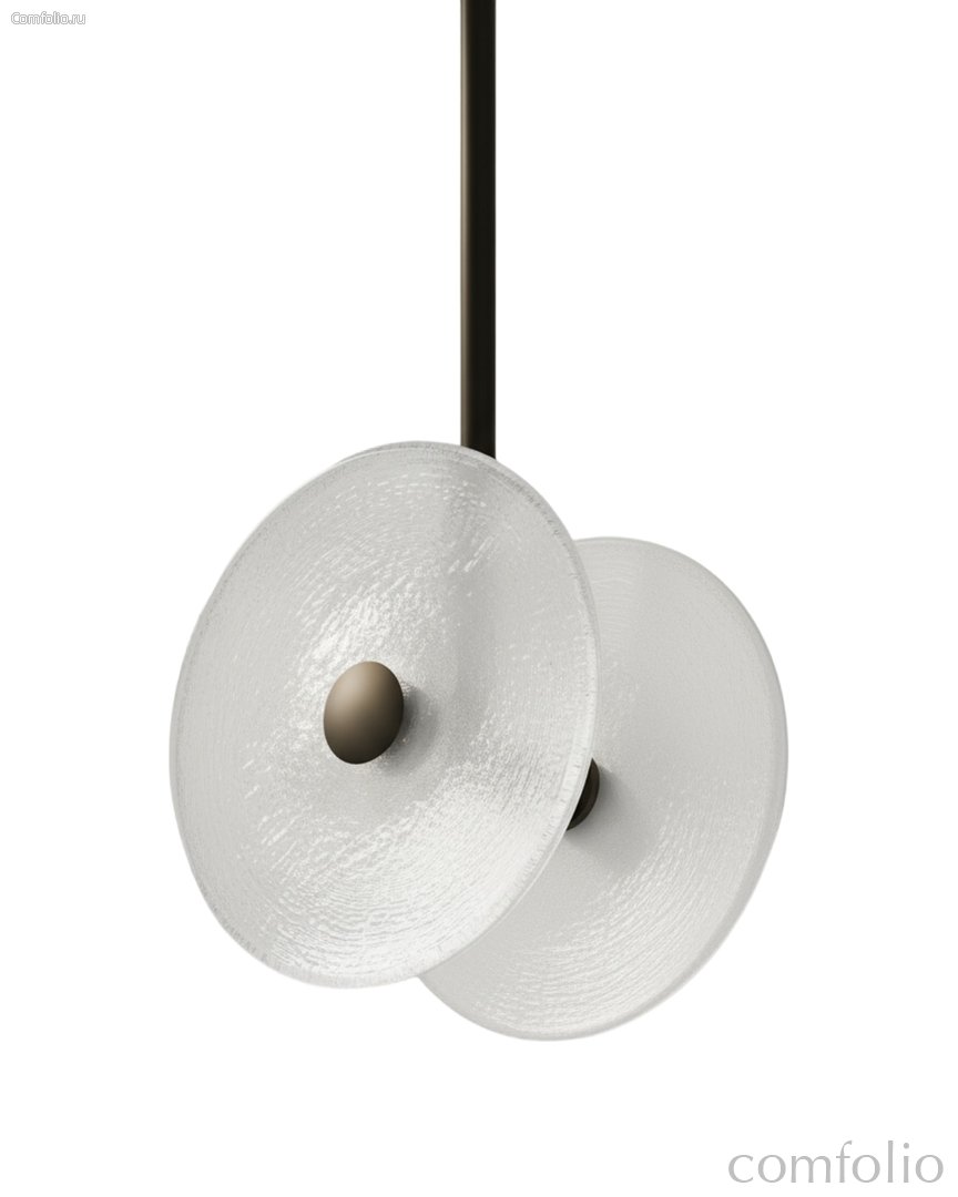 Черный подвесной светильник "Милфорд" — лаконичный акцент для современного интерьера. Два фактурных стеклянных диска мягко рассеивают свет, создавая комфортное, ненавязчивое освещение без бликов. Чёрный металлический стержень и центральные декоративные элементы подчеркивают графичность формы и легко сочетаются с мебелью и фурнитурой в темных оттенках. Модель органично смотрится над барной стойкой, обеденным столом, в гостиной или спальне, поддерживая стили минимализм и soft-contemporary. Светильник дарит уютную атмосферу и не перегружает пространство, оставаясь стильным акцентом в любой комнате. Отличный выбор для тех, кто ищет функциональный и эстетичный свет в одном изделии.