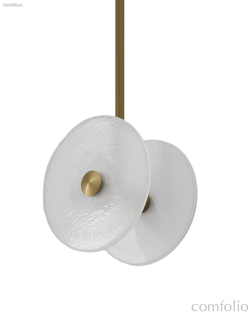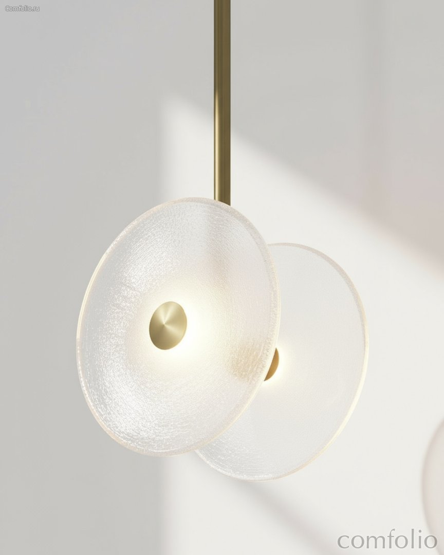 Золотой подвесной светильник "Милфорд" — лаконичный акцент для современного интерьера. Два фактурных стеклянных диска мягко рассеивают свет, создавая комфортное, ненавязчивое освещение без бликов. Золотистый металлический стержень и центральные декоративные элементы подчеркивают графичность формы и легко сочетаются с мебелью и фурнитурой в темных оттенках. Модель органично смотрится над барной стойкой, обеденным столом, в гостиной или спальне, поддерживая стили минимализм и soft-contemporary. Светильник дарит уютную атмосферу и не перегружает пространство, оставаясь стильным акцентом в любой комнате. Отличный выбор для тех, кто ищет функциональный и эстетичный свет в одном изделии.
