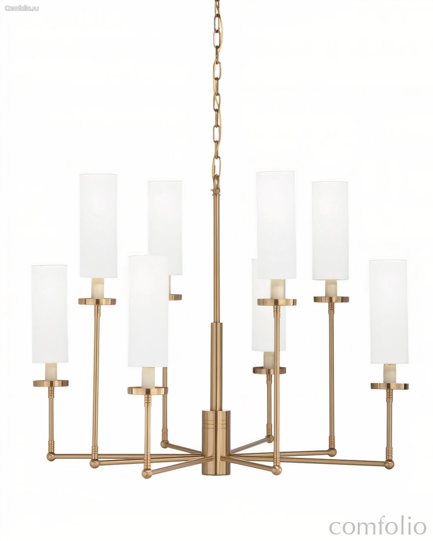Золотая люстра "Новара" – это элегантное и современное осветительное решение, которое станет изысканным украшением любого интерьера. Двухуровневая конструкция люстры выполнена в цветовой гамме - латунь, что придает ей благородный и роскошный вид. Люстра оснащена восемью лампами, каждая из которых дополнена белыми тканевыми абажурами цилиндрической формы. Такое сочетание создает мягкий и рассеянный свет, наполняющий помещение уютом и теплом. Идеально подходит для гостиных, столовых или спален, люстра "Новара" привнесет в ваш дом современное сияние и подчеркнет изысканность вашего вкуса. Превратите свое пространство в место, где каждая деталь говорит о стиле и гармонии.