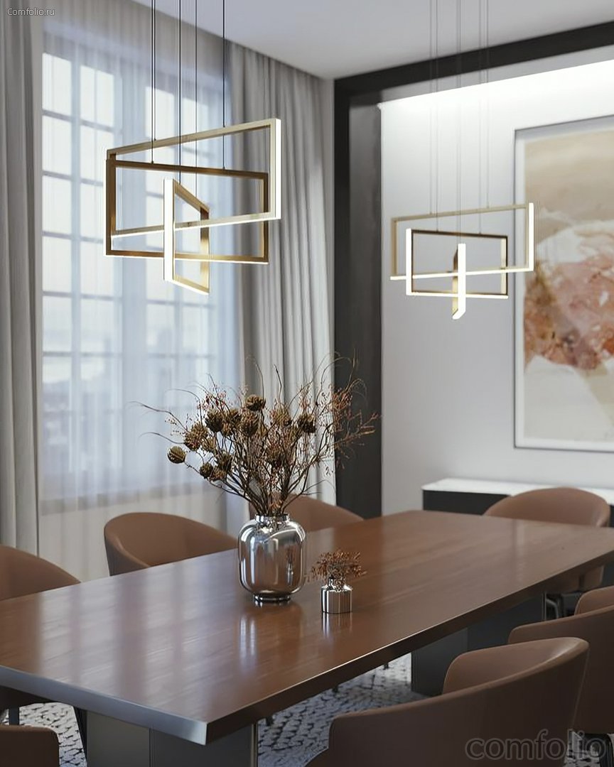 Золотая люстра "Ульрих" сочетает в себе лаконичность и простоту дизайна, который состоит из трёх прямоугольных форм, создающих геометрическую фигуру и придают ей современный вид. Встроенные светодиодные модули расположены вдоль внешнего края каждого прямоугольника, обеспечивая яркое и равномерное освещение. Люстра доступна в двух вариантах цвета: чёрном и золотом. Металлическая рама и покрытие золотистого или черного цвета придают люстре стойкость к внешним воздействиям и сохраняют ее изначальный внешний вид на протяжении длительного времени. Одной из главных преимуществ этой люстры заключается в ее энергоэффективности. Благодаря использованию светодиодных модулей, эта люстра потребляет значительно меньше электроэнергии, чем обычные люстры. Это не только экологичное решение, но и экономически выгодное. Светодиодные модули имеют длительный срок службы и требуют минимального обслуживания, что позволяет сэкономить время и деньги на замене лампочек. Золотая люстра "Ульрих" является идеальным дополнением к современному интерьеру. Она будет выглядеть прекрасно в гостиной, столовой или спальне. С ее помощью вы сможете создать эффектное и яркое освещение, которое станет настоящим украшением вашего дома!