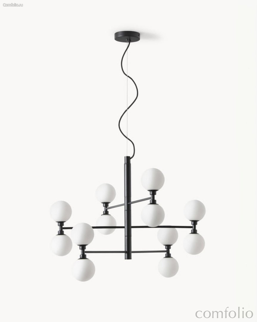 Чёрная люстра "Гровер" - это эффектный светильник в современном стиле, который станет выразительным центром интерьера. Классическая форма в сочетании с матовым чёрным основанием и белыми опаловыми плафонами создаёт элегантный контраст и подчёркивает архитектурность модели. Люстра гармонично смотрится в гостиной, столовой или просторной кухне. Размер люстры составляет 56 см в высоту и 70 см в диаметре, при этом общая высота регулируется от 66 до 166 см, что позволяет адаптировать её под разные потолки. Основание выполнено из металла с матовой покраской, а плафоны изготовлены из стекла с мягким опаловым цветом. Каждый плафон имеет диаметр 10 см и равномерно рассеивает свет, создавая комфортное освещение без бликов. «Гровер» - это стильное и сбалансированное решение для тех, кто ценит современный дизайн, чёткие линии и качественные материалы.