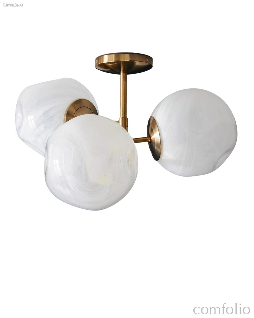 Золотистый светильник "Клауд" с плафонами с облачным узором - изящная модель с мягким, уютным характером и выразительным дизайнерским акцентом. Плафоны из стекла с деликатным облачным рисунком создают эффект лёгкой дымки и равномерно рассеивают свет, наполняя пространство тёплым и комфортным освещением. Золотистое металлическое основание придаёт светильнику благородство и подчёркивает его современную эстетику. Сочетание округлых форм и художественного стекла делает модель визуально лёгкой, но при этом заметной в интерьере. Светильник гармонично смотрится как в центральной зоне комнаты, так и в составе композиции над обеденным столом, в гостиной или спальне. Он добавляет интерьеру глубину, мягкость и ощущение уюта. Модель «Клауд» удачно вписывается в интерьеры в стилях современный, американский, mid-century modern, soft minimal и contemporary. Это универсальное решение для тех, кто ищет светильник с характером, сочетающий декоративность, тёплые материалы и комфортный свет.