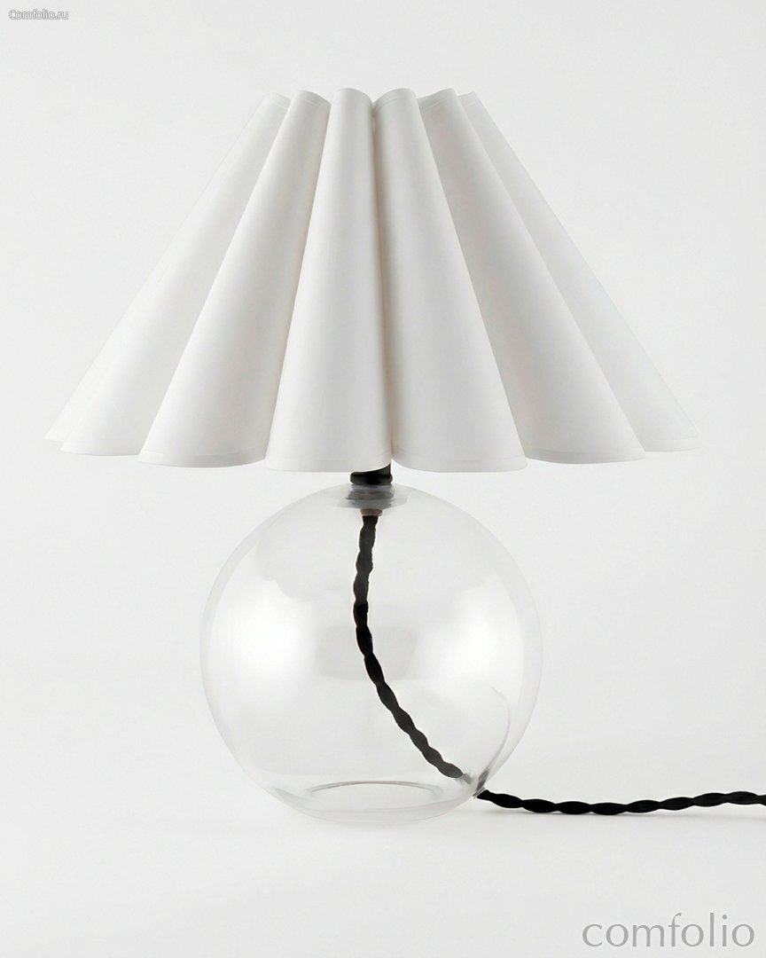 Прозрачная лампа "Джудит" - это изящный акцент, который наполняет интерьер ощущением лёгкости и спокойствия. Прозрачное стеклянное основание выглядит воздушно и визуально не утяжеляет пространство, отражая свет и окружающую обстановку. Белый конусный абажур с выразительной складчатой формой мягко рассеивает свет, создавая уютное, комфортное освещение для отдыха и вечернего времени. Лампа даёт тёплый, ненавязчивый свет, идеально подходящий для прикроватной тумбы, консоли или рабочего стола. «Джудит» гармонично вписывается в современные, скандинавские и минималистичные интерьеры, а также в пространства с природной палитрой. Эта модель легко сочетается с натуральным деревом, светлыми текстурами и лаконичным декором, добавляя интерьеру элегантность и спокойный характер.