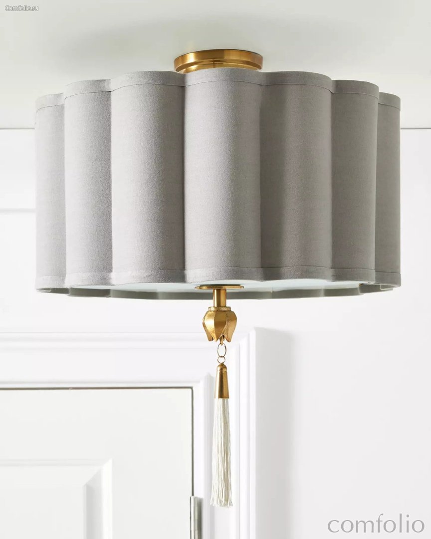 Потолочный светильник “Тампа” – идеальное решение для создания уютной и стильной атмосферы в вашем доме. Этот современный светильник сочетает в себе изящный дизайн, функциональность и качество. Основным элементом светильника является изогнутый дизайн из серого хлопкового плафона. Хлопковый плафон позволяет равномерно распределить свет, создавая мягкую и приятную атмосферу в помещении. Основной фокус в дизайне “Тампы” – это декоративная белая кисточка, которая находится в самом центре светильника. Эта кисточка добавляет элемент игривости и оригинальности в общий образ светильника. Монтаж светильника к потолку осуществляется при помощи потолочной чаши, что позволяет вам создать эффект плавного воздушного парения в пространстве. Этот потолочный светильник будет идеальным дополнением к интерьерам в стиле бохо-шик или любому другому современному дизайну. Сочетание изгибов светильника, серого хлопкового плафона и белой кисточки создает гармоничный и завершенный образ, который привнесет в ваш дом неповторимый шарм и стиль.