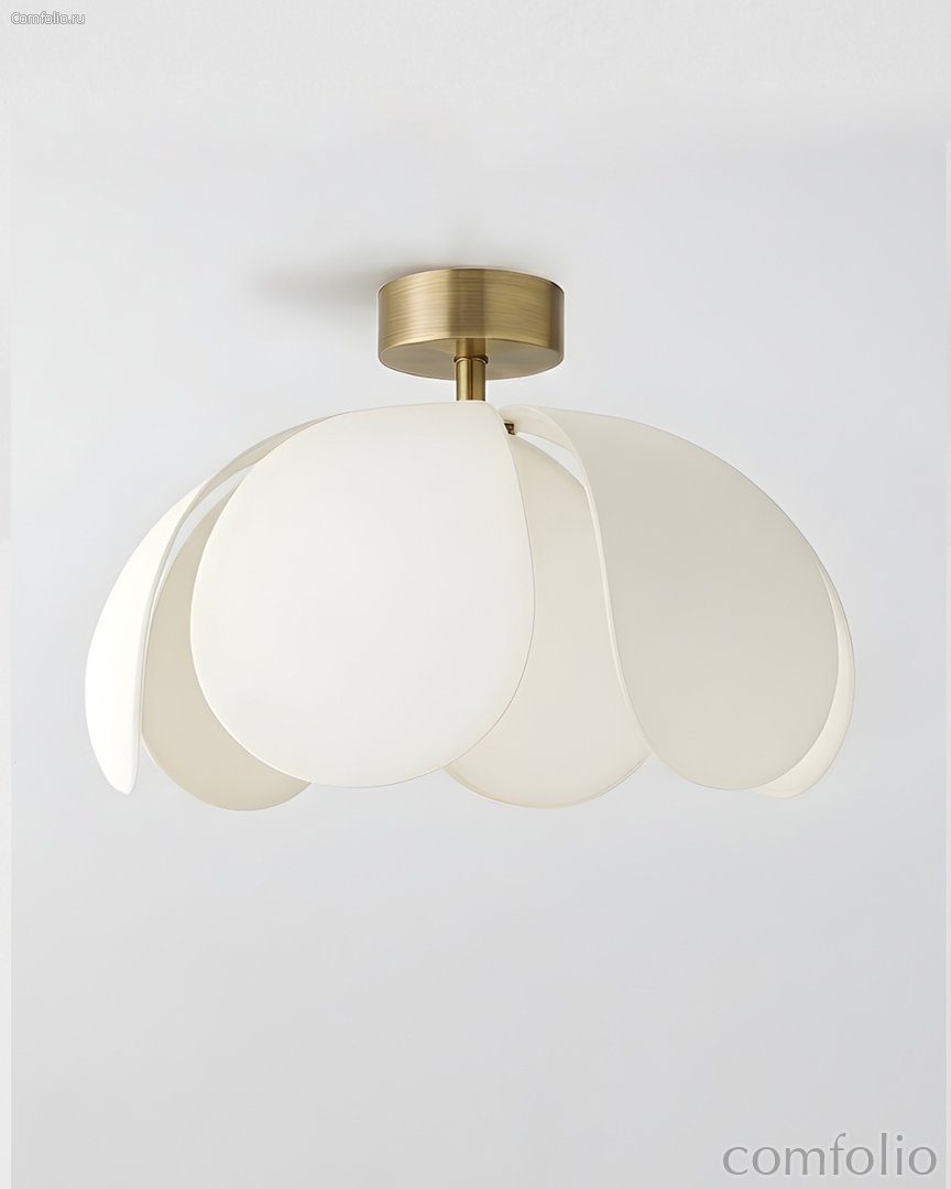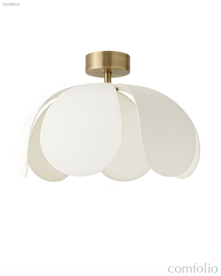 Золотистый потолочный светильник "Флэк" с белым абажуром - это стильное и утончённое решение для современных интерьеров в американской эстетике. Его мягкая, округлая форма и многослойный льняной абажур создают ощущение лёгкости и визуального объёма, наполняя пространство тёплым и комфортным светом. Белый текстильный абажур гармонично сочетается с деталями из брашированной латуни, придавая светильнику элегантный и аккуратный внешний вид. Размер светильника составляет 38 см. × 50 см. × 50 см., что делает его универсальным вариантом для гостиных, спален, коридоров и столовых зон. Конструкция выполнена из металла с гальваническим покрытием, а абажур изготовлен из натуральной ткани, благодаря чему свет рассеивается мягко и равномерно. Модель рассчитана на одну лампу с цоколем E27 мощностью до 40 Вт. Декоративным лепесткам светильника можно придать индивидуальную форму вручную — это позволяет настроить внешний вид и создать желаемый визуальный эффект под ваш интерьер. Потолочный светильник «Флэк» органично впишется в интерьеры в стилях современный, american modern, contemporary и modern classic, добавляя пространству уюта, мягкости и дизайнерской завершённости.