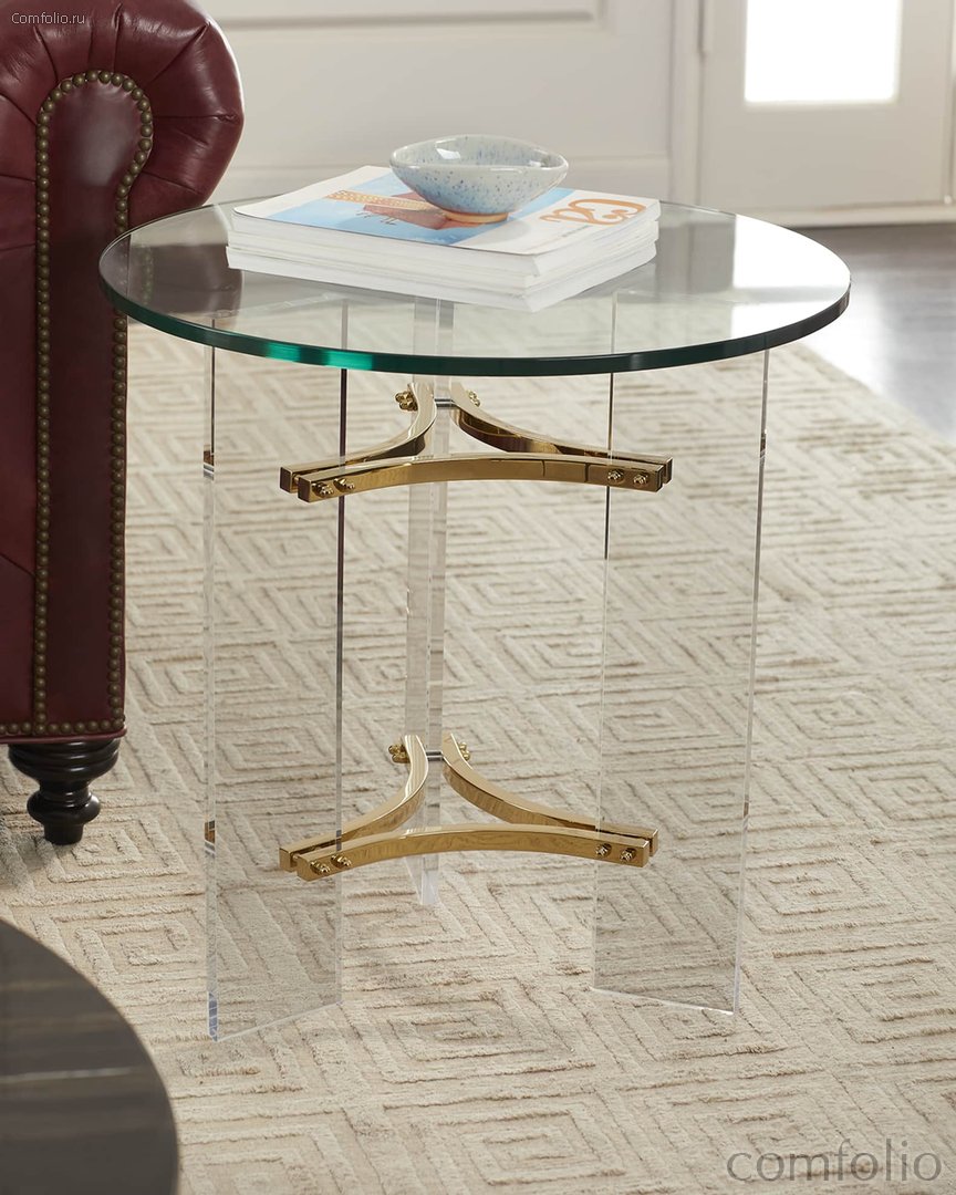 Столик приставной "Гарнет" — это элегантное и стильное решение для современного интерьера. Его уникальный дизайн сочетает в себе легкость и роскошь, делая его настоящим акцентом в любом пространстве. Круглая столешница из закаленного стекла добавляет изделию изысканности и визуальной легкости, а прямоугольные акриловые ножки создают эффект невесомости, подчеркивая современный стиль столика. Особое внимание привлекают акцентные детали в середине ножек, выполненные в цветовой гамме полированной латуни. Эта отделка добавляет столику утонченности и гармонично сочетается с различными стилями интерьера — от минимализма до ар-деко. Столик "Гарнет" не только красив, но и практичен. Благодаря компактным размерам он легко вписывается в любое пространство: гостиную, спальню, офис. Идеально подходит для размещения напитков, книг, декоративных элементов или в качестве стильной подставки для светильника.