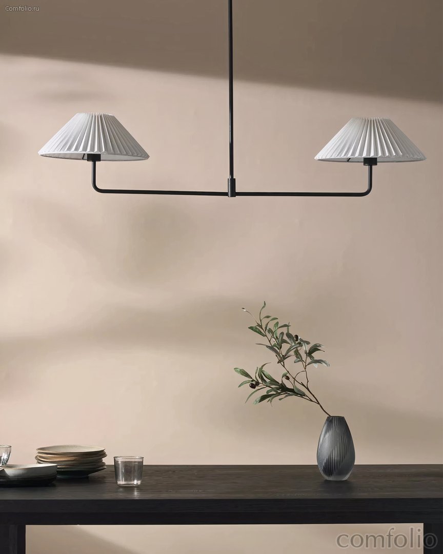 Чёрная люстра "Харриет" - это изысканное и стильное освещение, которое добавит элегантность любому интерьеру. Она имеет двухламповую конструкцию, выполненную в минималистичном стиле, что делает ее универсальным вариантом для различных помещений. Комбинация матово-черного цвета и белых плиссированных тканевых абажуров создает элегантный контраст, обеспечивая приятное и мягкое освещение. Люстра "Харриет" идеально подходит для гостиной, столовой, спальни или любого другого помещения, где требуется эстетичное и функциональное освещение. Ее дизайн сочетает в себе классические и современные элементы, что позволяет легко вписать ее в различные стили интерьера.