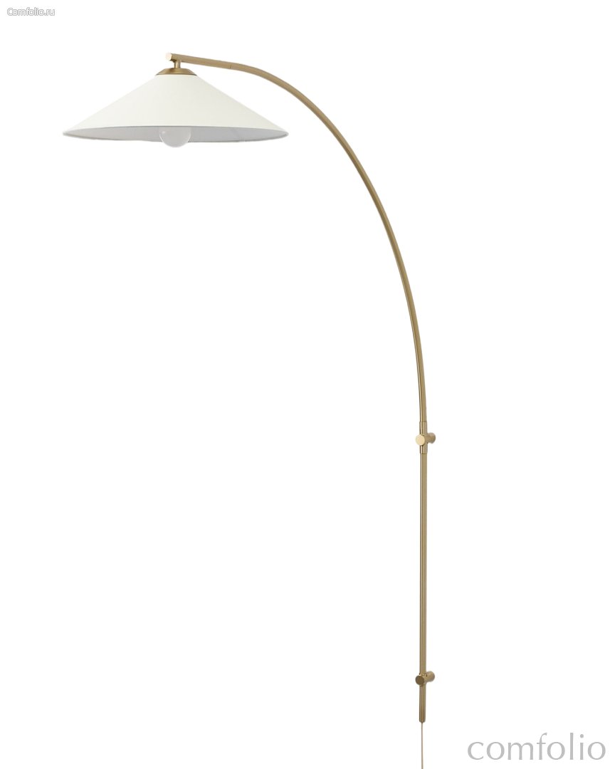 Золотой настенный светильник "Эймс" — это элегантное решение для акцентного и функционального освещения. Изогнутая металлическая штанга подчёркивает выразительный архитектурный силуэт модели. Отделка брашированная латунь придаёт светильнику тёплый благородный оттенок и делает его визуально мягким и тактильно приятным. Лаконичный абажур мягко рассеивает свет, создавая комфортную атмосферу для чтения и отдыха. Светильник фиксируется в одном положении, обеспечивая стабильное направление света и подчёркивая чистоту и продуманность формы.
