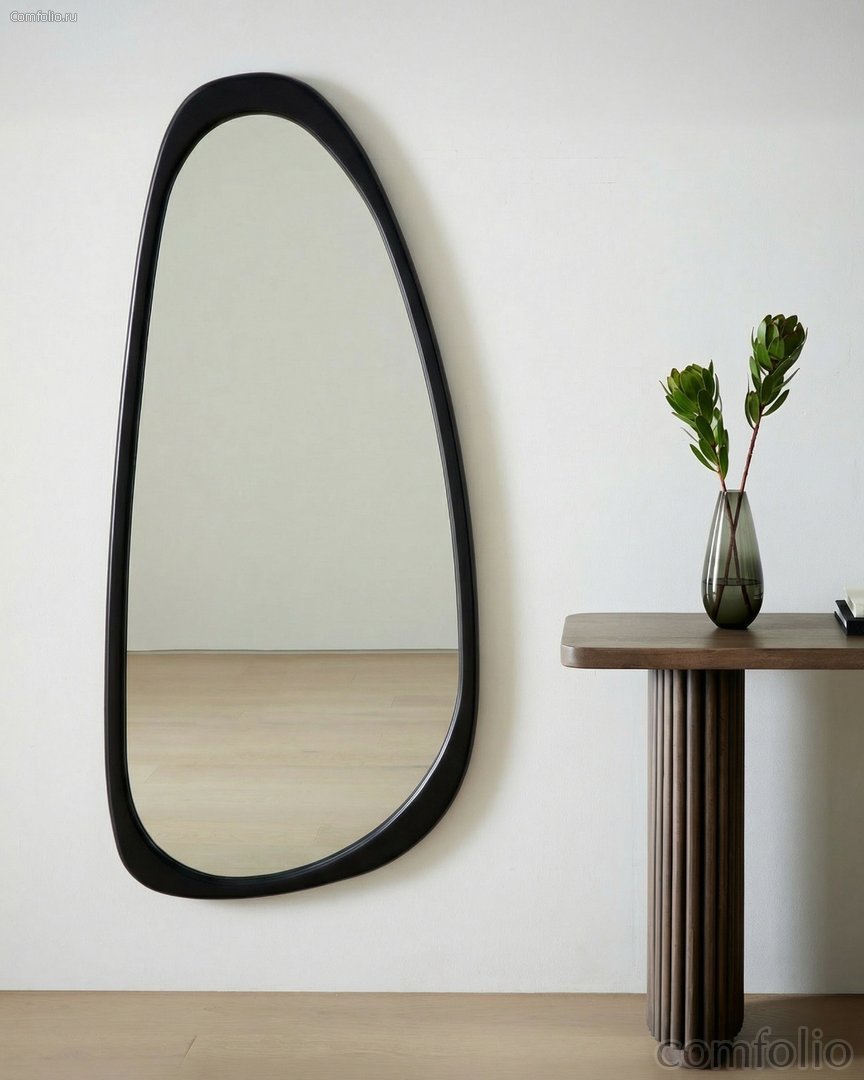 Зеркало в ассиметричной раме Рино, чёрное - Louvre Home