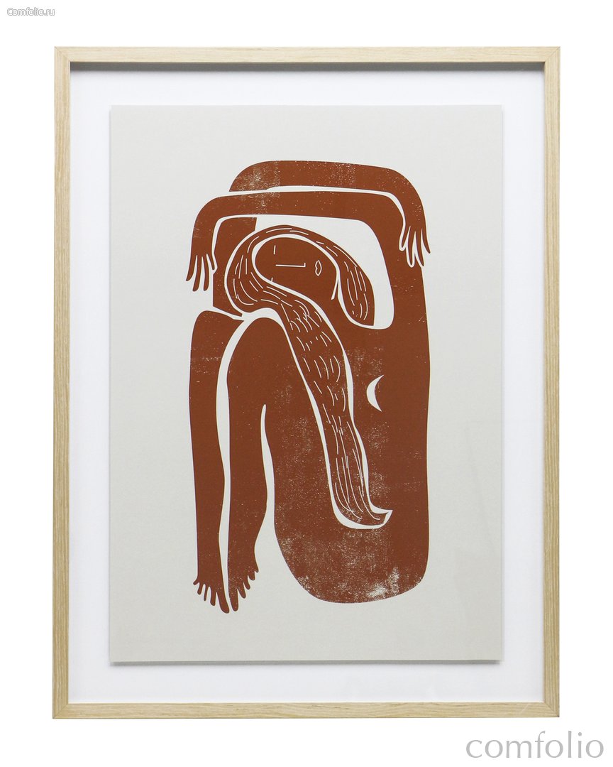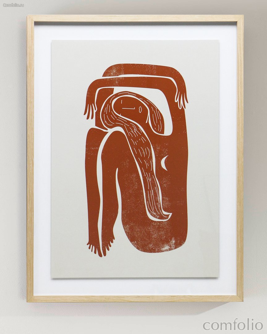 Интерьерный постер "Moon River" - это абстрактное изображение женской фигуры, выполненное в теплых терракотовых тонах на светлом фоне. Фигура изображена в расслабленной позе, с поднятыми руками и длинными волосами, что создает ощущение спокойствия и умиротворения. Стиль изображения минималистичен, с плавными линиями и простыми формами, что подчеркивает современный подход к искусству. Такой дизайн может символизировать темы близости, самопринятия и внутреннего мира. Постер будет отлично смотреться в интерьере, добавляя акцентный элемент и создавая атмосферу уюта. Он подходит для различных стилей оформления, от скандинавского до бохо.