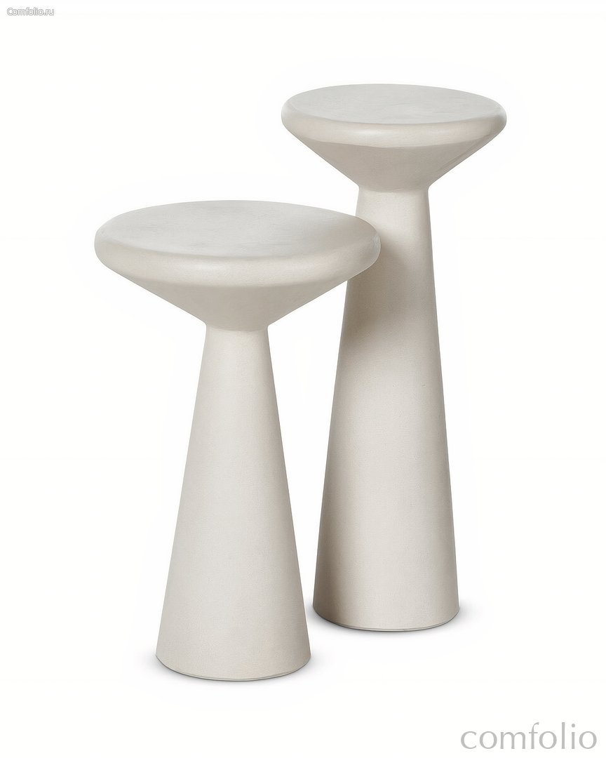 Комплект белых приставных столиков "Сомерсет" — это воплощение элегантности и минимализма, которые идеально дополнят любое пространство. Изготовленные из цемента с матовой белой отделкой, столики привлекают внимание своей необычной формой: широкая столешница плавно переходит в коническую ножку, создавая ощущение легкости и воздушности. В набор входят два столика шахматной высоты, которые можно использовать как вместе, так и по отдельности. Их универсальность позволяет гармонично вписаться в интерьер гостиной, спальни или офиса, добавив ноту современного стиля. Используйте столики для декора, в качестве подставки для напитков, книг или аксессуаров. Комплект "Сомерсет" — это не только функциональный предмет интерьера, но и стильное решение для завершения желаемого образа вашего пространства.