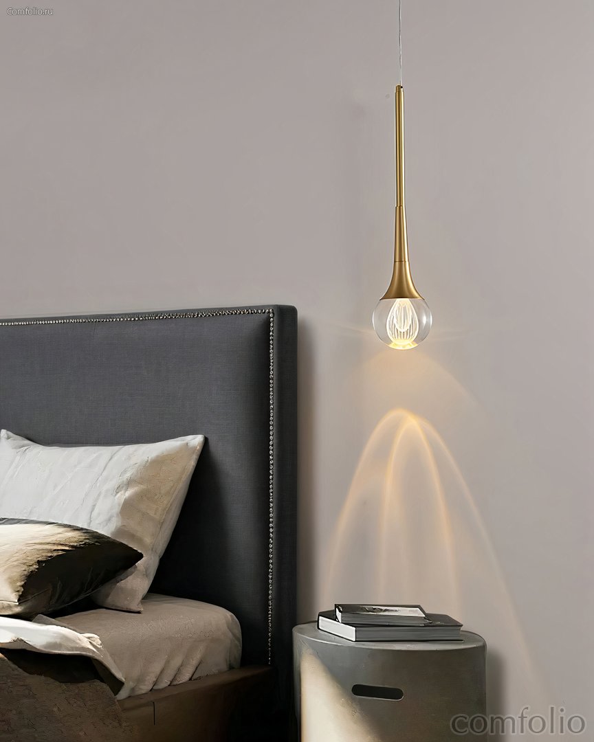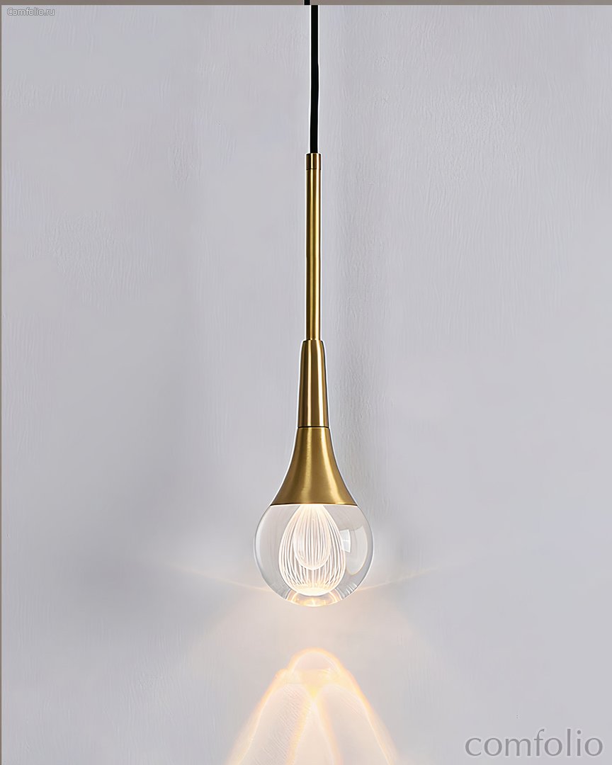Золотой подвесной светильник "Дольф" - это предмет декора, который сочетает в себе стиль и функциональность. Этот светильник создан для того, чтобы преобразить любое помещение и придать ему особую атмосферу благодаря своему уникальному дизайну и качественным материалам. Основой этого светильника является стеклянная капля, которая скрывает внутри себя светодиодную лампу. Свет, исходящий из источника, преломляется и рассеивается через стекло, создавая волшебный и многослойный ореол света внутри самого светильника. Этот игривый эффект добавит особую атмосферу в интерьер, делая его более уютным и привлекательным. Дополнительным элементом декора этого светильника является металлический элемент с отделкой в цветовой гамме - латунь. Эта деталь добавляет изысканности светильнику, делая его стильным акцентом в любом интерьере. Светильник "Дольф" подойдет для любого помещения - от гостиной до спальни или кабинета. Его можно использовать его как самостоятельно, так и в комбинации с несколькими светильниками, создавая световые композиции и играя с освещением.