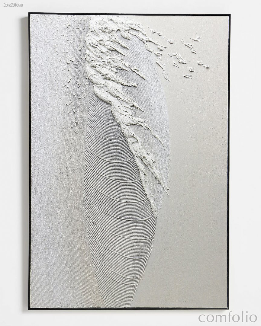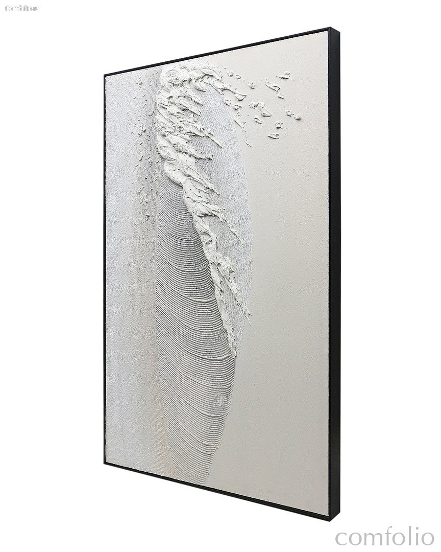 "Feather" - это абстрактная текстурная композиция. Оно выполнено в светлых тонах с элементами рельефного рисунка и объемными мазками. Панно сделано с использованием акриловой шпаклевки на холсте. Для создания рельефа применялись мастихины, кисти, специальные инструменты для текстурирования. В некоторых местах поверхность выглядит гладкой и равномерно прорисованной, а в других — хаотичной и фактурной, что добавляет динамику и глубину композиции. Панно отлично подходят для современных интерьеров в стиле минимализм, скандинавский, лофт или модерн.