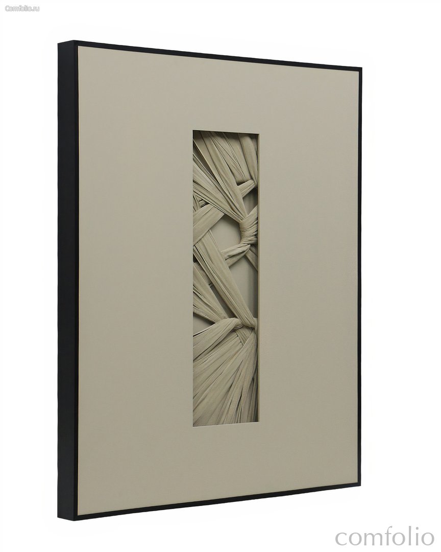 Интерьерное панно "Рохас-I" - это декоративное произведение с текстильной вставкой в центре. Основная часть выполнена в минималистичном стиле — светлый фон с узким вертикальным вырезом, в котором расположены переплетённые волокна. Такое панно может использоваться в интерьере в стиле эко, минимализм, японский ваби-саби. Оно привлекает внимание сочетанием лаконичного дизайна и фактурных материалов.