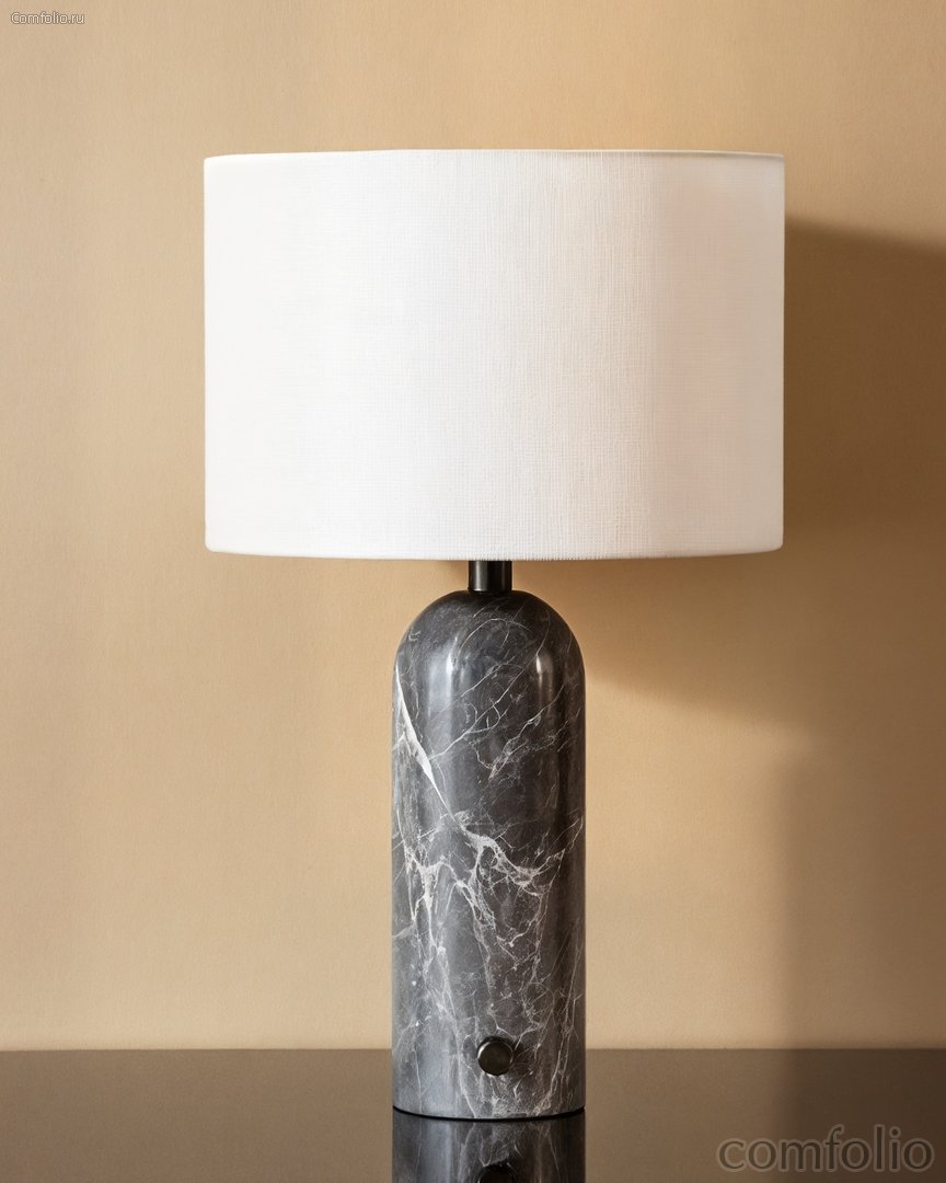 Настольная лампа Эдвин из серого мрамора с белым абажуром, серая - Louvre Home