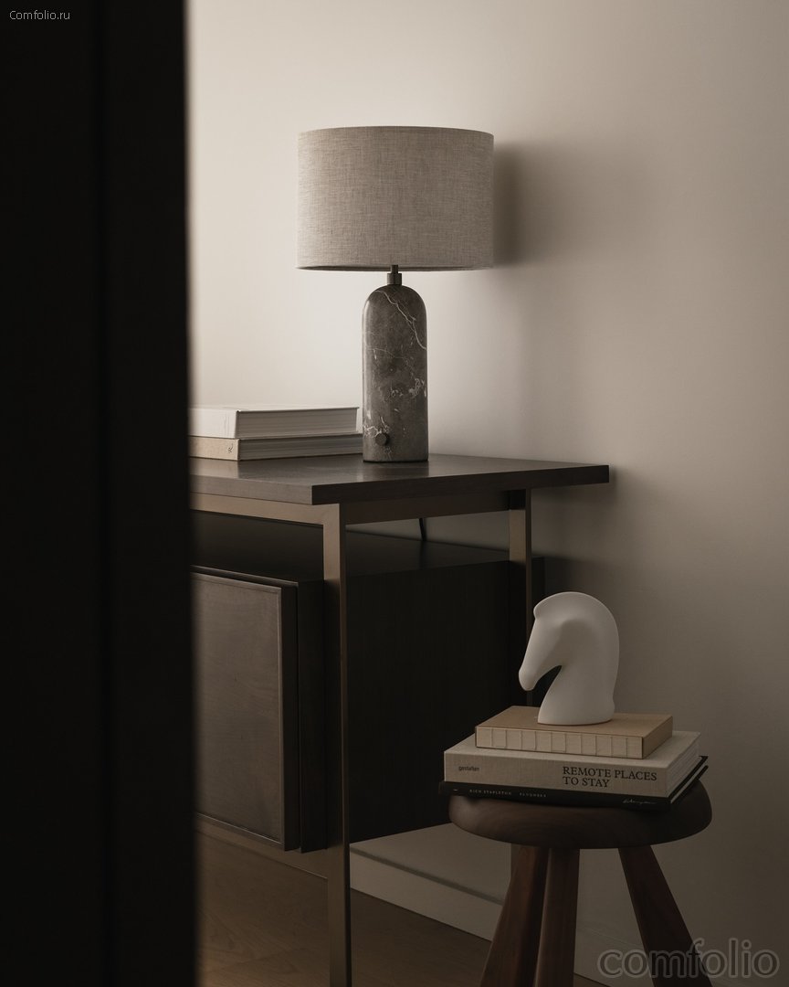 Настольная лампа Эдвин из серого мрамора с бежевым абажуром, серая - Louvre Home