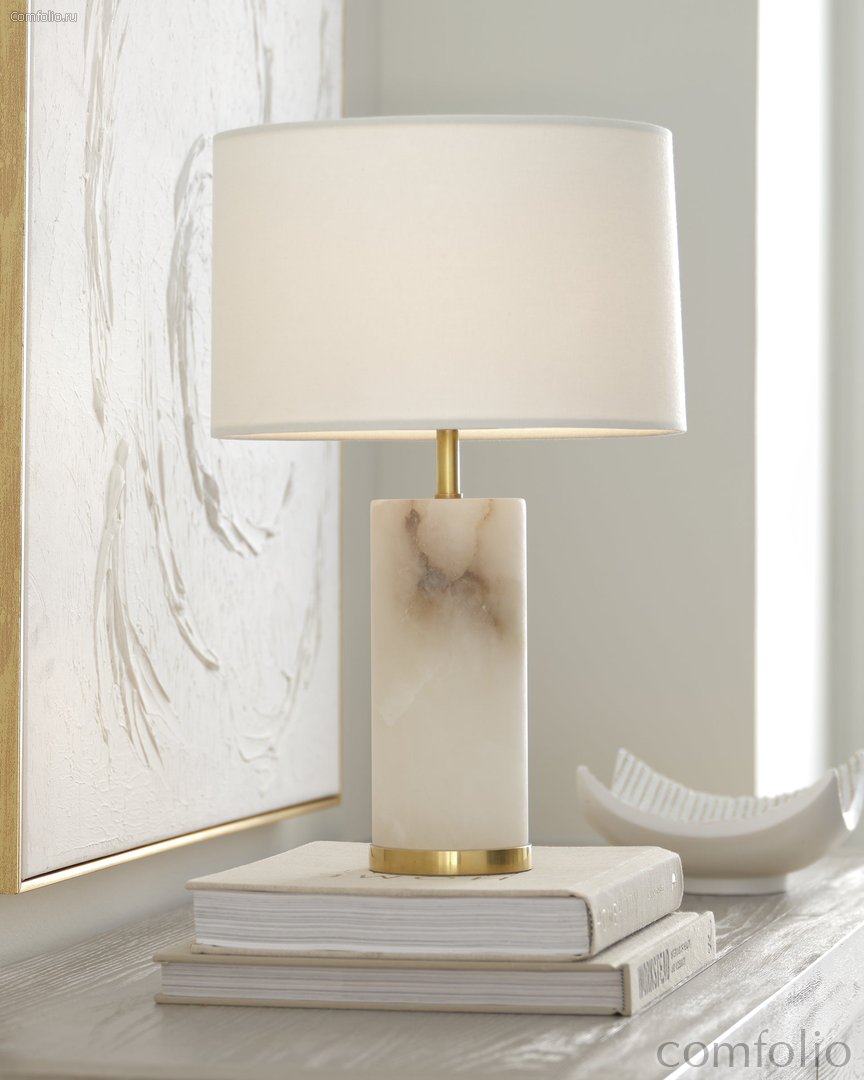 Настольная лампа «Прая» - это выполненная в изысканном американском стиле, в духе современной классики. Она станет элегантным акцентом в интерьере спальни, гостиной или кабинета, придавая пространству атмосферу уюта и благородной сдержанности. Основание лампы изготовлено из натурального алебастра — природного камня, известного своей мягкой фактурой и утончённой полупрозрачностью. Благодаря природному происхождению материала, каждая лампа имеет уникальный мраморный рисунок, что делает каждое изделие неповторимым. Тёплая латунная фурнитура гармонично сочетается с текстурой алебастра, а абажур из светлого текстиля мягко рассеивает свет, создавая комфортное освещение. Диаметр абажура в самом широком месте составляет 27 см, а общая высота лампы — 40,4 см. Модель «Прая» идеально впишется в интерьер, оформленный в стиле американская классика, и подчеркнёт утончённый вкус владельца.