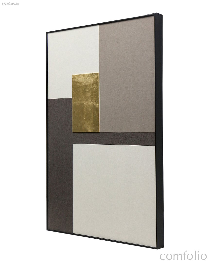 Интерьерная картина-панно “Rhythm-II” – эта картина выполнена в стиле колор-блок. Она состоит из крупных цветовых блоков из ткани, разделенных четкими границами. Использованы различные оттенки серого и черный, а также элементы с металлическим золотым покрытием. Эта картина отлично подойдет для современного интерьера и хорошо сочетается с минималистичными, лофт- и скандинавскими стилями оформления.