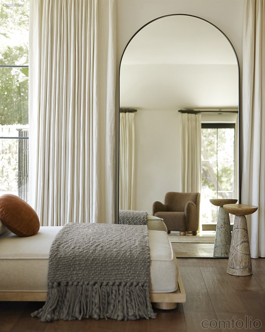Чёрное зеркало арочной формы "Савона" - это зеркало с отражением в полный рост, которое обязательно станет главной достопримечательностью вашей спальни или любого другого жилого помещения. Оно выполнено в высоту почти 209 см, что придает ему величественный вид и создает ощущение увеличенного визуального пространства в комнате. Одной из самых привлекательных особенностей этого зеркала является его куполообразная верхняя часть. Именно благодаря такому дизайну, это большое зеркало приобретает особую мягкость, добавляя утонченности в ваш интерьер. Проработанный изящный изгиб способствуют созданию элегантного образа, делая это зеркало настоящим произведением искусства. Помимо своей эстетической ценности, зеркало в полный рост "Савона" также функционально. Оно обладает достаточным размером, чтобы отобразить ваш образ в полном размере, что является удобным при выборе и согласовании одежды и аксессуаров. Также, это зеркало может быть использовано в качестве декоративного элемента, отражающего свет и создающего игру отражений в комнате. Зеркало в полный рост "Савона" легко вписывается в любой стиль интерьера, будь то классический, современный или ретро. Его дизайн позволяет легко сочетать его с другой мебелью и декоративными элементами, придавая вашему помещению завершенный вид. Оно украсит вашу спальню или жилую комнату, создавая неповторимую атмосферу уюта и изысканности.