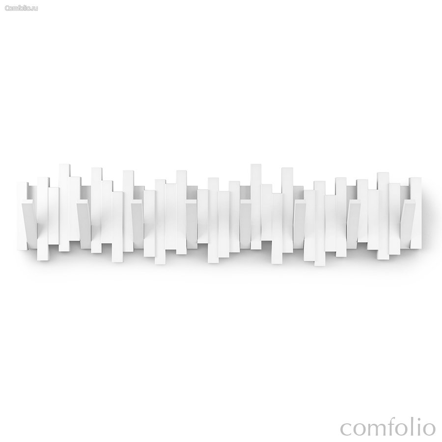 Вешалка настенная Sticks, 72 см, 8 крючков, белая - Umbra