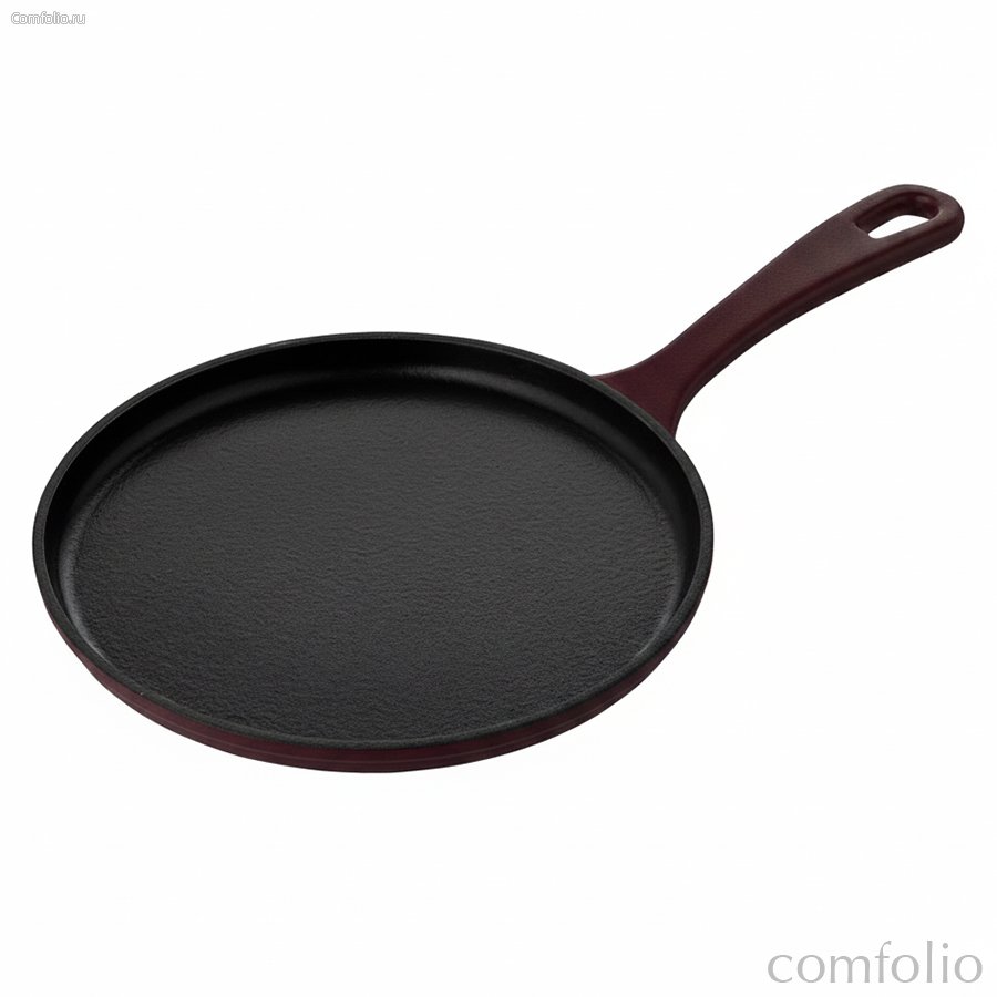"Сковорода блинная чугунная ?24 см из коллекции ",Шеффилд",, бургунди – та самая посуда, которая будет служить десятилетиями. Долговечный и прочный материал быстро и равномерно распределяет тепло по поверхности, обеспечивая идеальный прогрев блюд. , ,