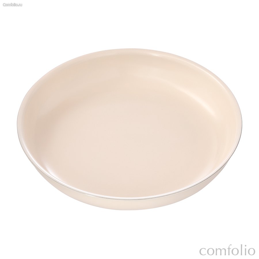 Материалы: алюминий, керамическое покрытие. Размер (,ВхШхГ),: 5,1х29,6х29,6 см. Диаметр по внешнему краю: 29,6 см. Диаметр по внутреннему краю: 28 см. Диаметр дна снаружи: 20,5 см. Диаметр дна изнутри: 24 см. Высота стенки изнутри: 4,7 см. Толщина дна и стенок: 0,3 см. Цвет: молочный.