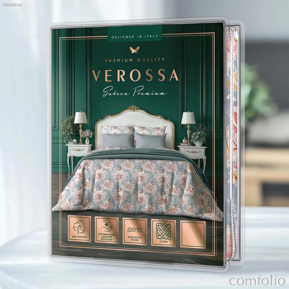 Сатин премиум — натуральная хлопковая ткань. Структура сатина премиум формируется сложным переплетением, которое замедляет воздухообмен через слой ткани, поэтому изделия по ощущениям особенно теплые и мягкие. При этом ткань подвижная и эластичная, что в сочетании с её гладкостью и мягкостью делает сатин премиум любимой тканью для изысканных неженок! Cатин премиум обладает благородным приглушенным матовым блеском. Мы не обрабатываем его силиконом и не деформируем ткань валами для придания ей повышенного сияния— так наша ткань сохраняет свои природные свойства: прочность, влагопоглощение и долговечность. Постельное белье Verossa следует за сменой сезонов в природе и настроения в интерьере, создавая для каждого времени года свое уникальное решение: тонкость и нежность перкаля для весны и лета, мягкость сатина и плотность страйпа — для зимы и осени. Мы создаем коллекции домашнего текстиля Verossa, чтобы Вы могли наслаждаться красотой и премиальным качеством каждого изделия, получать удовольствие от любого мгновения, проведенного дома. Verossa – это роскошные ткани с уникальными свойствами, тщательно отобранные материалы естественного происхождения, серии дизайнов на самый взыскательный вкус. Verossa дарит возможность полностью преобразить интерьер и атмосферу, добавив изысканности, элегантности и лоска любой комнате. Комплекты и предметы постельного белья, мягкие изделия для сна и декоративные изделия, махровые полотенца для ванны и кухонный текстиль Verossa – это лучший подарок, который Вы можете сделать себе или своим близким!